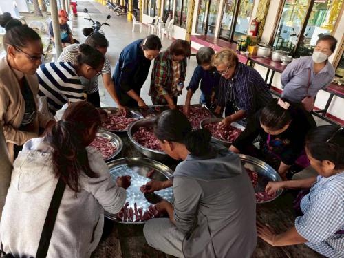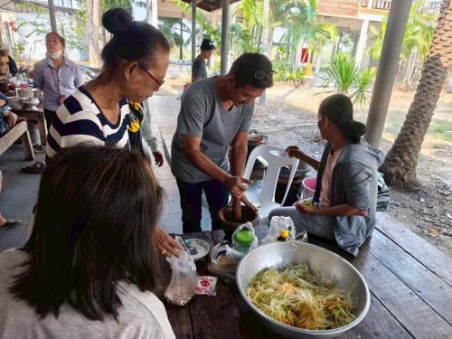 กิจกรรมวันที่ 2 : สร้างทักษะและพัฒนาอาชีพ "การทำหมูเเดดเดียว" ให้กับสมาชิกกลุ่มออมทรัพย์ และมีการสนับสนุนครัวเรือนเป้าหมายในการรวมตัวกันจัดตั้งกลุ่มอาชีพตามศักยภาพของสมาชิก โดยมีกลุ่มเป้าหมายเข้าร่วมจำนวน 30 คน ณ วัดสระงาม ตำบลห้วยใหญ่